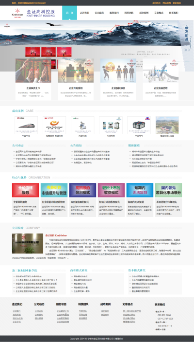 此次新版网站,金证高科采用了国际品牌 kinthinker 作为域名,而金证企管则沿用了公司原来的域名 jinzheng.org 。金证高科自2004年成立,前十年主要从事认证咨询、管理咨询与管理培训的服务项目,自2015年开始全面转型升级提升以融资上市和并购重组的服务项目,重点为企业效益提升与IPO上市全价值链战略技术服务。经整合调整,秉着“服务好老客户,发展好新客户”的基本原则,公司传统的“认证咨询、管理咨询与管理培训”服务项目由全资控股子公司宁波市金证企业管理有限公司持续提升服务,而总公司宁波市金证高科控股有限公司及其它子公司重点提供融资上市、并购重组和效益提升的服务项目。