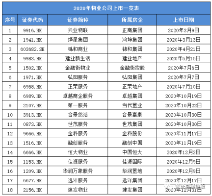2020年12月31日作为今年的最后一天,建发物业在港交所正式挂牌上市,为2020年的物业上市划上句号。在物业板块估值较高等因素影响下,物业公司IPO步伐明显提速。据金证高科控股地产物业研究部不完全统计,截至2020年12月24日,今年在主板上市的物业公司数量已达18家,其中A股1家,H股17家,较2019年12家新上市公司数量增加6家。