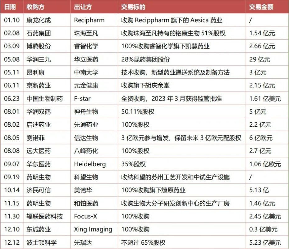 拐点或将到来。一是美联储加息步入尾声,小型生物技术企业在2022年调整期下,估值都有了大范围的下降,趋近合理水平;二是疫情期间,抗疫相关药企利润可观,在手现金流充足;三是大型药企产品的专利逐渐到期,面临增长乏力的隐忧,需要布局更多新的产品和技术以提升企业的竞争力。